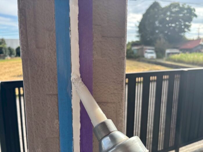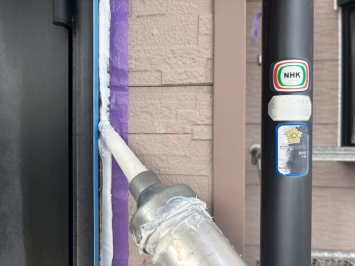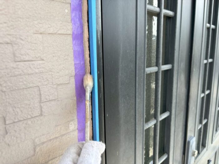 最初に古いコーキングを撤去してから、マスキングテープ張り~コーキングプライマー塗布です