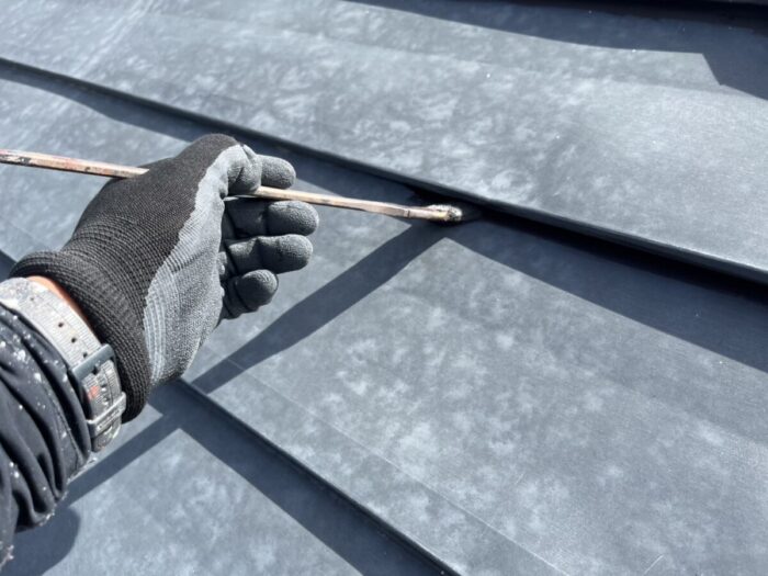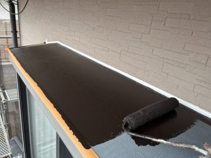 使用塗料は屋根トタン部と同じ2液エポキシ系の錆止め塗料です