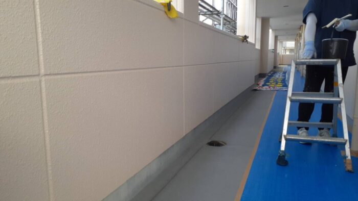 1階から3階の玄関の通路面と2か所ある階段室の塗装が終わりました