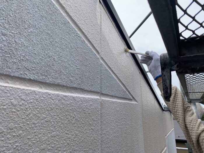 元々が2色で色替えのある外壁でしたので、今回も同じ場所で色替え塗装です