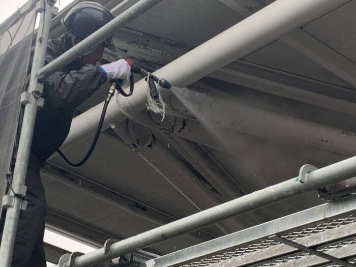 鉄骨の旧塗膜がペラペラ剥げかけているので、全体的にケレンをしました