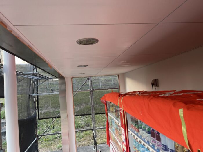 トイレの南面に自販機コーナーがあるのですが、ボード壁がボロボロです💦