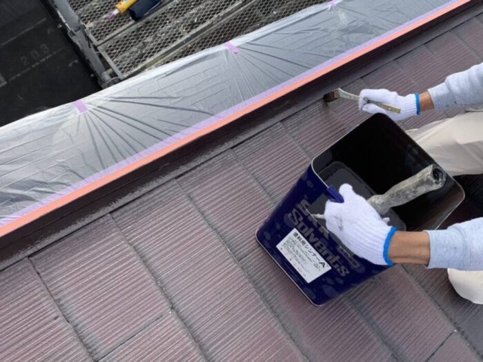 使用塗料は弱溶剤系の2液硬化型のエポキシ系プライマーです