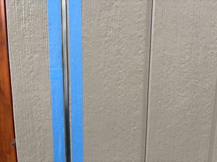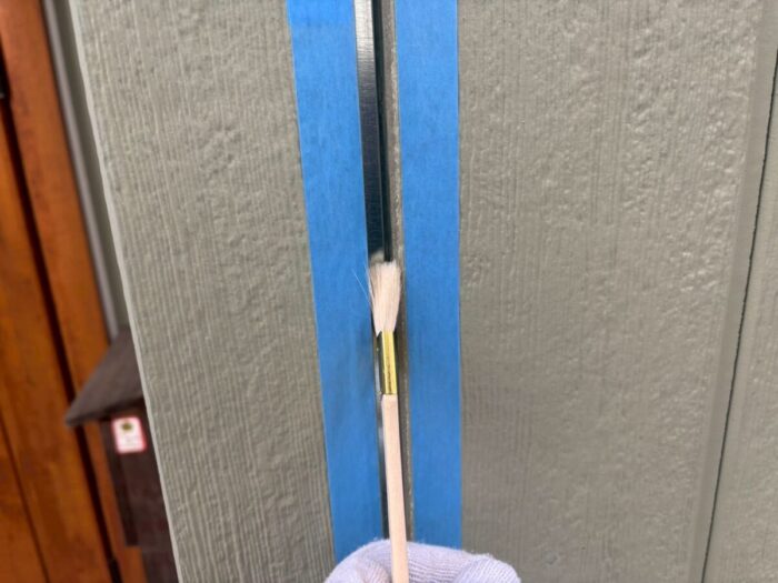 最初に外壁目地の古いコーキングを撤去~マスキングテープ張り~プライマー塗装をしました