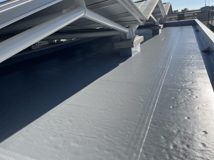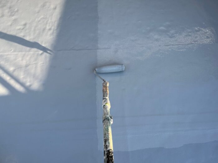 屋上防水塗装のトップコートを塗装して塗装完了となりました