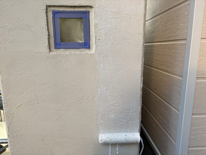 元々は砂状の塗料が塗ってありましたが、今回も同じ系統の塗料が良いとの事ですので、水性シーラーを塗りました