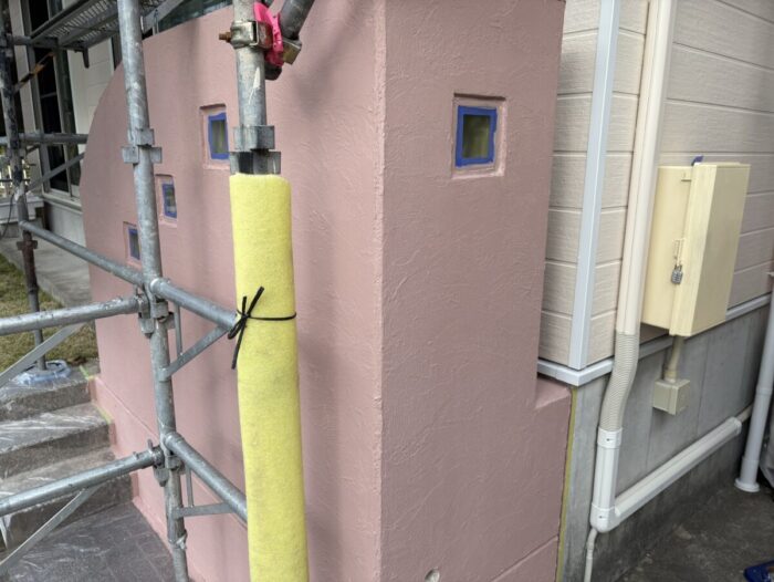 色は外壁のピンク色に合わせて塗りました