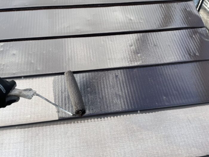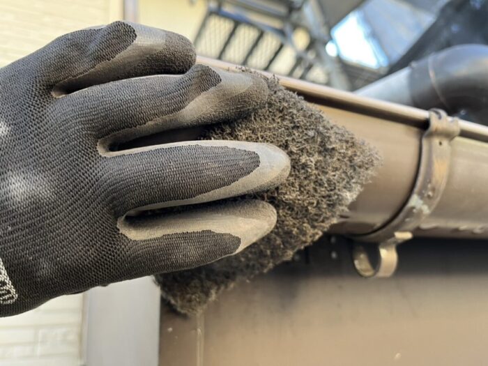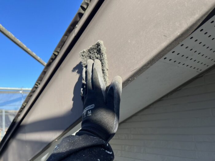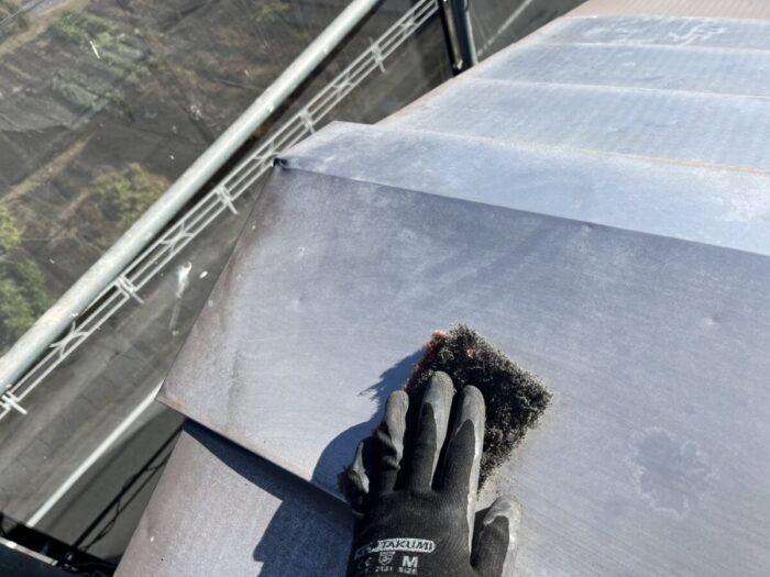 続いて屋根と付帯部の下地処理で足付け作業をしました