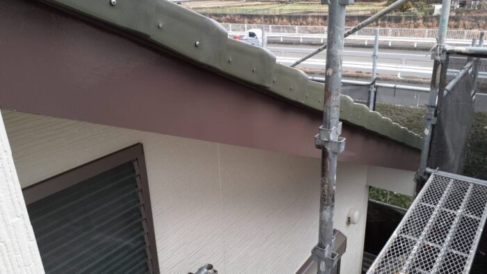 破風板、雨樋、ダクト、シャッターBOX、水切り等の上塗りをしました